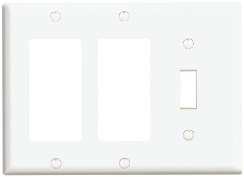 | 3-Gang 1-Toggle 2-Decora/GFCI Device Combination Wallplate, Standard Size, Thermoset, Device Mount - White, UPC: 07847749118 ...Read more |
